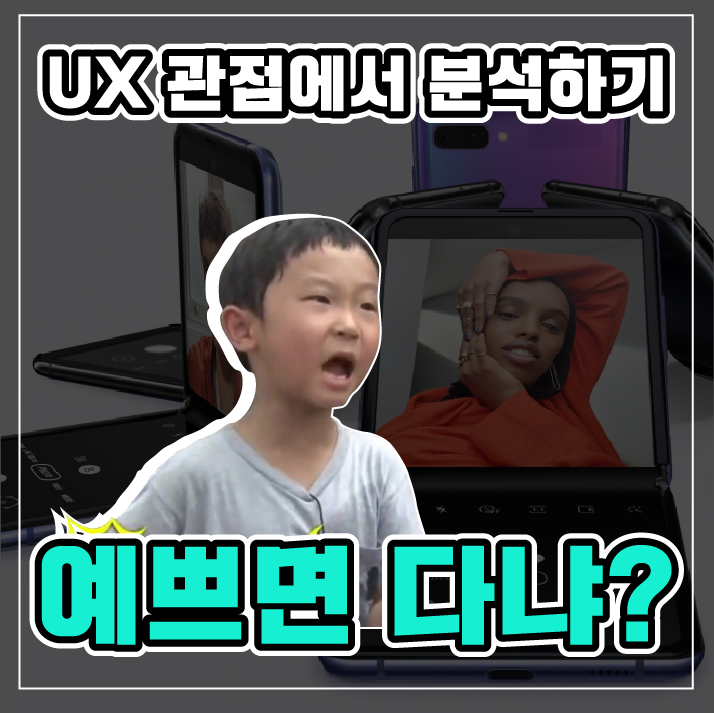 과거 폴더블폰이 한 손가락(주로 엄지)으로 탁! 하고 열 수 있던 것과 달리, Z플립은 양손을 모두 활용하여 열어야한다는 사소한 불편도 있습니다. 스마트폰을 접어서 가져다주는 자잘한 불편한 경험은, 오히려 사용자의 '흥미로운 경험'을 부각시켜줍니다.
