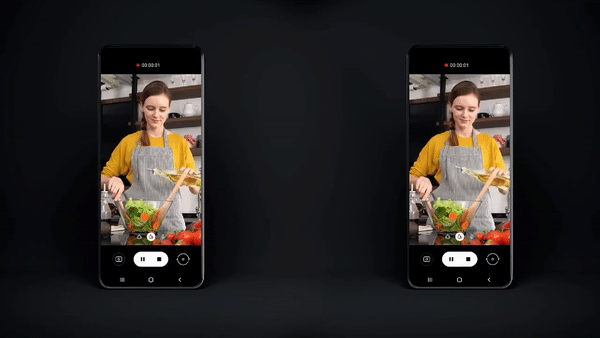 '프리스탑(Free-stop)' 기술을 활용해서, 내가 원하는 각도로 휴대폰을 고정해놓을 수 있습니다. 그리고 (일부의) 어플리케이션은 고정된 각도에 따라 UI가 휙휙 바뀝니다. 이렇게 말이죠.