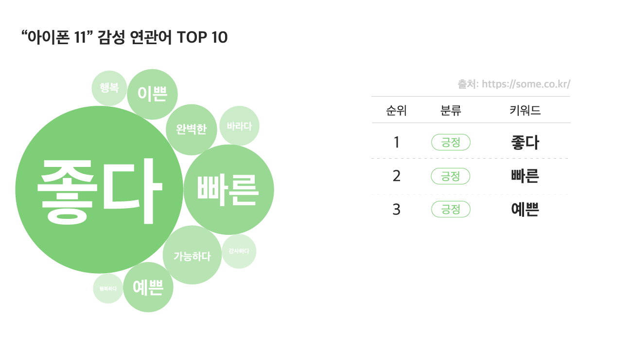 아이폰의 최근작인 아이폰11에 대한 관련어는 '좋다', '빠른', '가능하다'가 주를 이루고 있습니다. 아이폰은 대대로, 특유의 '아이폰 감성'을 선호하는 충성 고객이 많았습니다. 그런데 이번에 출시된 Z플립에 대한 유저의 반응과 비교했을때, 아이폰11은 기능적인 모습, 유용한 경험이 확연히 강조되고 있습니다. 이것도 안되고, 저것도 안되지만 예뻐서 좋아!라고 외치던 고객들의 선택은 어떨까요?