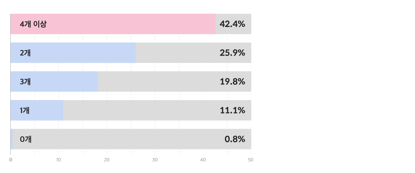 생각보다 다양했어요. 4개 이상의 앱을 사용했다고 답변한 분들이 거의 절반에