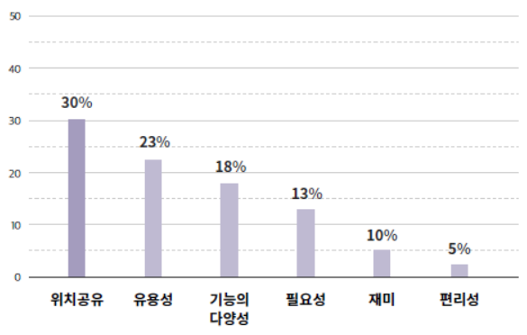 10대의 경우 ‘친구의 위치를 알 수 있어 심심할 때 유용하다’는 의견을 보이며, 20대는 ‘친구와 약속을 잡는 상황과 긴급상황에 유용하다’는 의견을 많이 보입니다.